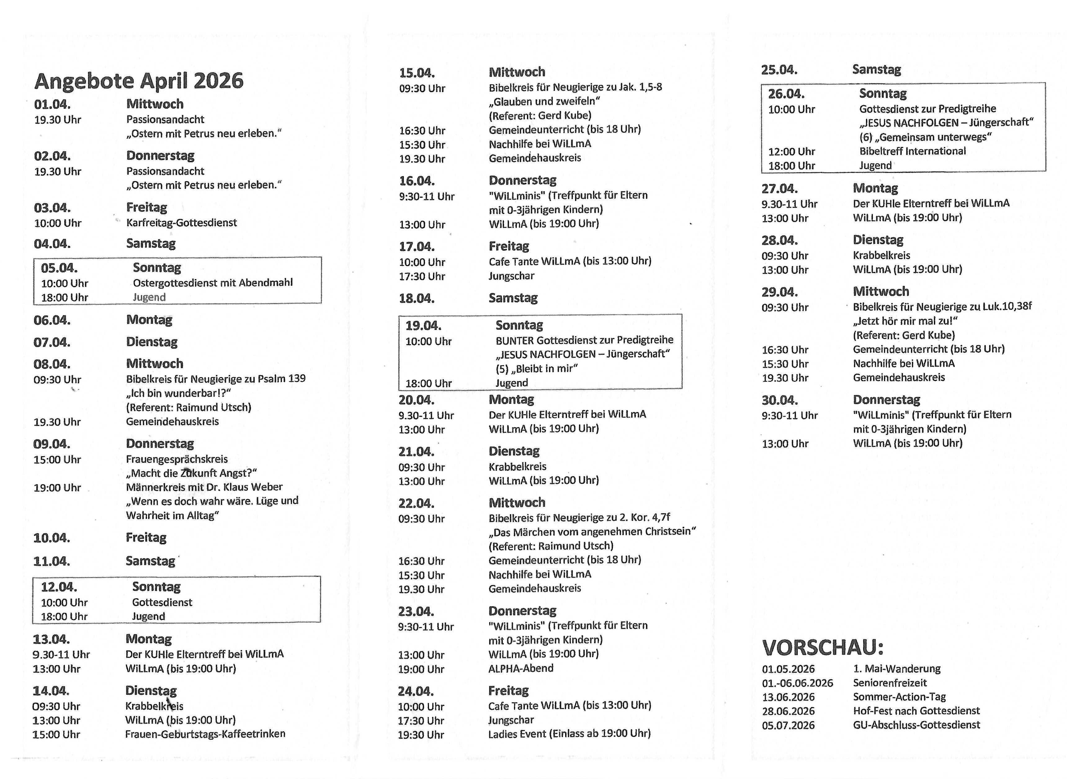 Termine im April 2026 als pdf