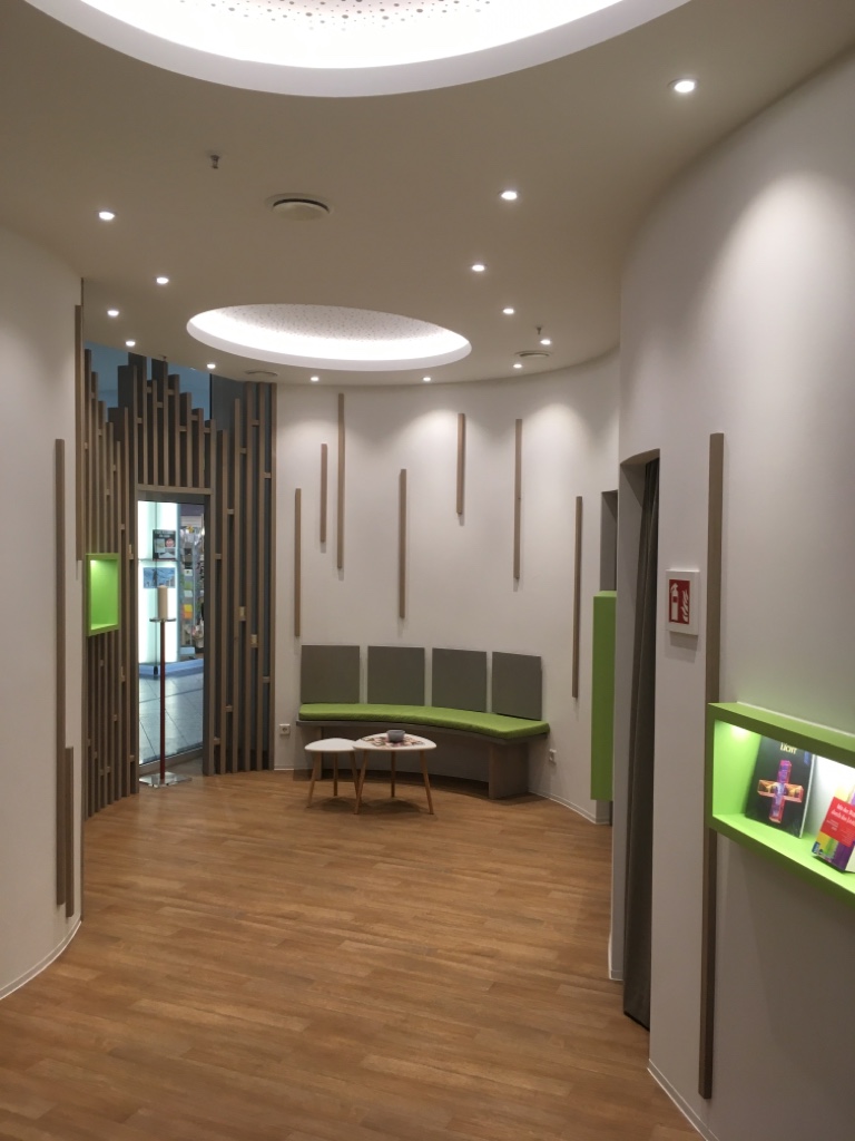 Tagsüber hat die "Kirche im Stern" aktuell dienstags bis samstags von 11-15 Uhr geöffnet. Neben Raum zur Begegnung in ungezwungenen Atmosphäre steht auch auch eine Auswahl an Büchern und Karten zum Verkauf.